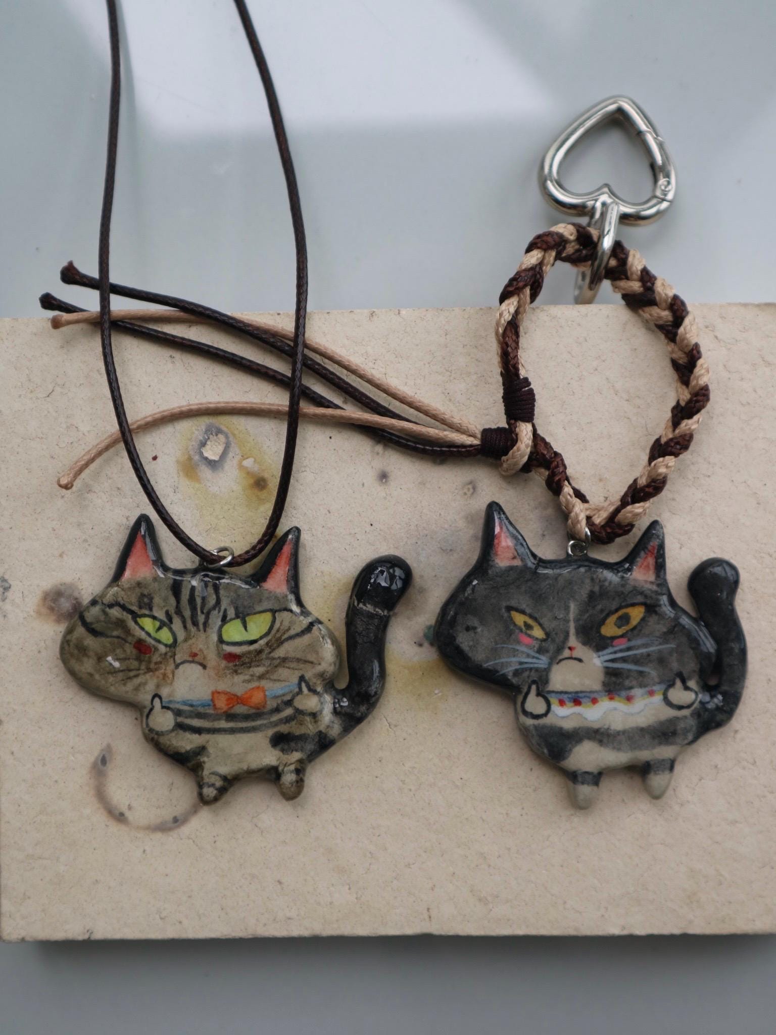 This handmade grumpy cat Necklace & Keychain is designed by Ainsley, inspired by her quirky and mischievous cat! With its cheeky middle finger pose and sassy expression, this piece is both adorable and hilariously bold.
